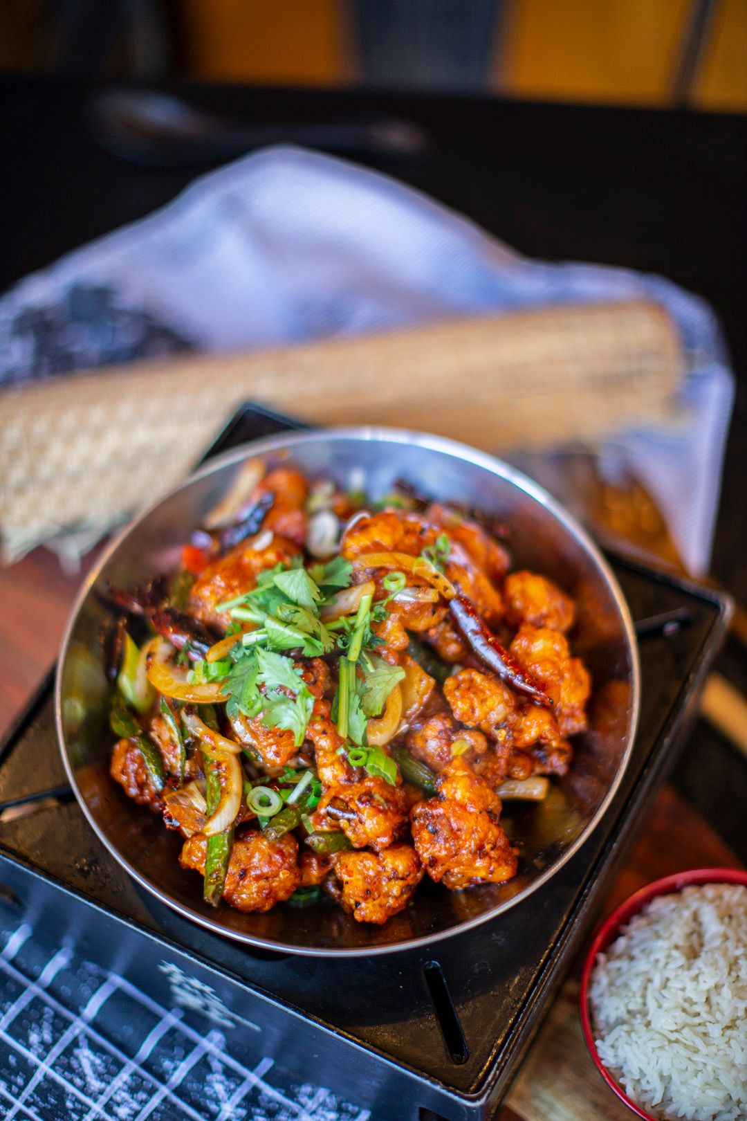 Crispy General Tso’s chicken tossed in a sweet and slightly spicy sauce, served with a warm bowl of egg drop soup and one golden crab Rangoon filled with creamy cheese.